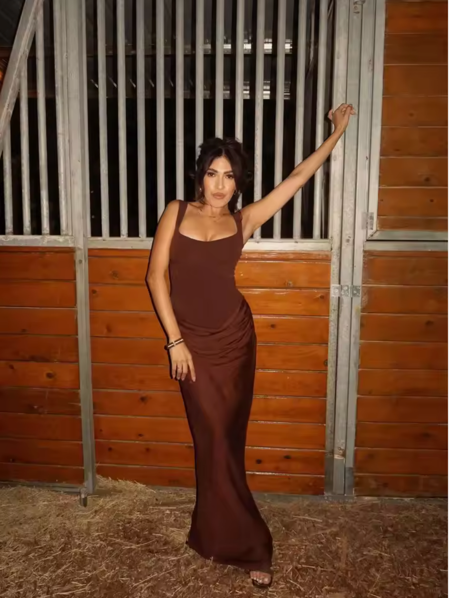 This wine-red sequin dress is stunning! The sleeveless cut shows off arms perfectly, and the sparkle isn't tacky at all. Obsessed!
